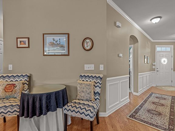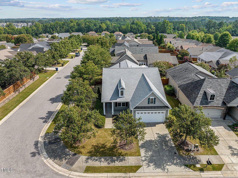 One-level living immaculately maintained, located just 1 block from the heart of resort-style AMENITIES that Highland Creek has to offer including the 11,000 SF LODGE! A quick jaunt takes you from poolside to porch side of this virtually maintenance free corner yard.Offering all that you need & nothing you don't.Split floor plan ensures privacy for all w/easy access to shared spaces.SS appliances (new stove & fridge convey) line this galley kitchen & pantry.Each bed offers oversized closets w/addt'l storage throughout.High ceilings, recessed lighting & audio, arched doorways, trey ceilings, crown molding & much more character to be seen including new roof (2024)! Just minutes to enjoy what Raleigh, Wake Forest, Rolesville OR Youngsville have to offer.