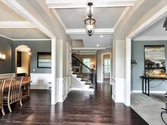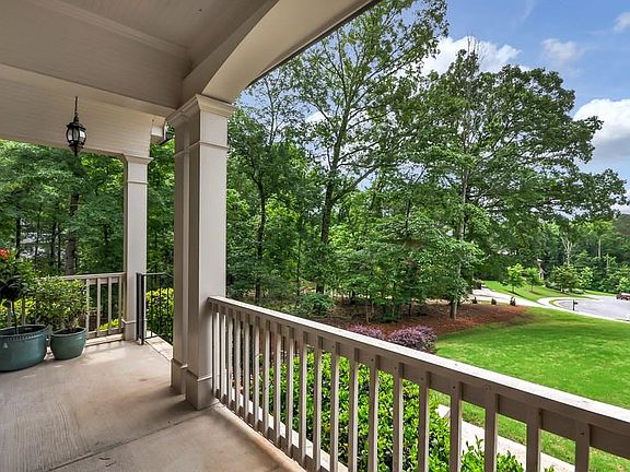 Location! Location! Gorgeous home located in the back of a quiet cul-de-sac, tree lined street and shows like new! Large, fenced, wooded backyard. Bedroom & full bath on main level, hardwoods throughout & loads of upgrades including coffered ceiling & plantation shutters throughout the house. Chef's kitchen with stainless appliances, walk in pantry, mud room & gorgeous open floorplan. Media room with large closet, master + 3 large bedrooms upstairs. Flagstone front porch, expansive deck and minutes to Kings Ridge, Cambridge HS, restaurants, shopping & GA400. A MUST SEE!