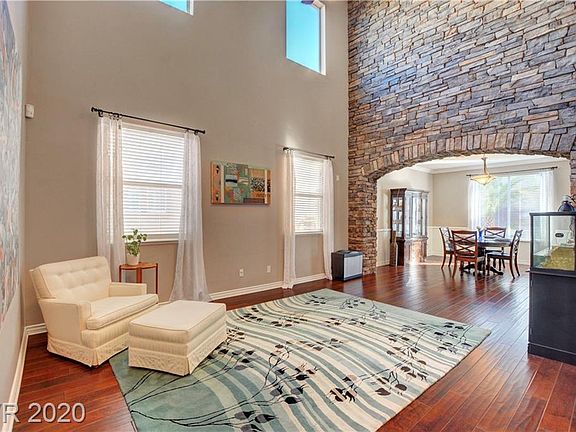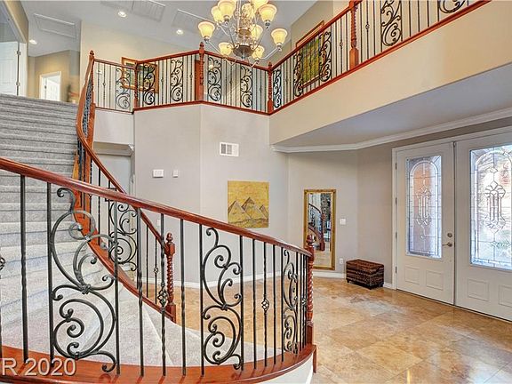When you step in to this beautiful home you are greeted by a sweeping staircase and vaulted ceilings that set the tone for warmth of this delightful home. There are five bedrooms,one is downstairs,plus two flex spaces to use as an office,den,or another bedroom. The highlight of the home is the roomy primary bedroom that boasts a personal retreat space,with double doors to the balcony that overlooks the backyard. Open the barn door to step into the spacious primary bathroom,with a jetted tub,three-way fireplace and huge walk in custom designed closet. The chefs kitchen is open plan with galaxy-black granite,custom cherry cabinets and stainless steel appliances. The many upgrades include warm stone trim throughout,travertine tile,hardwood floors,elegant crown molding and two fireplaces. The outdoor space is perfect for relaxing or entertaining,there's a sparkling pool and spa,covered patio with a ceiling fan for comfort,and a barbecue grill. This really has it all so pack your bags!