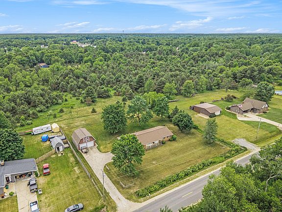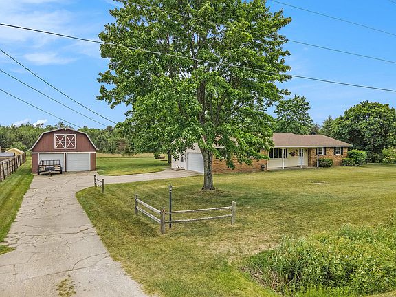Welcome to 2775 E Bard Rd — a well-maintained 4-bedroom, 2.5-bath brick ranch offering 1,764 square feet of comfortable living space on 1.11 peaceful acres. Inside, you'll find two large living areas, including a front living room and a cozy family room with a classic brick fireplace feature. The kitchen connects seamlessly to the dining area, offering generous cabinet space and a layout designed for everyday function.The primary bedroom includes a private full bath, and the remaining bedrooms offer flexible options for family, guests, or a home office. The half bath includes laundry space and a utility sink for added convenience. Major updates include a new roof, furnace, and gutters in 2022. The ventilation system has been professionally cleaned, and the home is move-in ready. All appliances are included in the sale. Curtains, blinds, and even select furnishings including the dining room table and king-size bed in the primary suite can remain at the buyer's request. Outside, a 24x28 barn-style garage offers loft storage and plenty of space for tools, toys, or additional parking. The large lot provides open space and privacy, all within the Reeths-Puffer School District