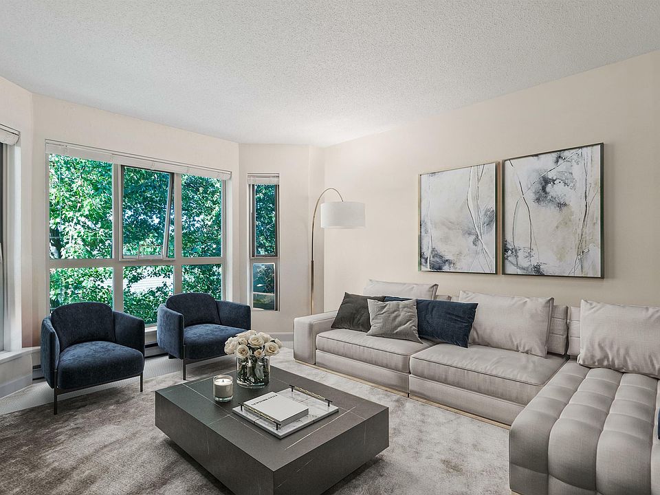 South Granville living at its finest! This one bedroom corner unit in highly sought after Sterling Court complex captures the perfect Vancouver lifestyle. Located on the quiet side of the building offering ample natural light with a truly functional open concept floor plan. Complete with gas a gas fireplace, galley kitchen and large patio. This property has been meticulously cared for and offers creative opportunity for simple aesthetic updates. Well maintained, pro active strata, fully rain screened building and fully re-piped in 2015. 1 parking, 1 locker. Rentals & Pets allowed. 1 dog (not to exceed 15 kg when full grown) or 1 cat. Quick walk to Meinhardt Fine Foods, Vancouver Lawn & Tennis Club, Earls, Cactus and so much more. Embrace boutique living at its finest.