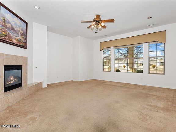 Welcome to the serene beauty of Appaloosa Meadows in Chino Valley, AZ, where this beautiful property awaits you. Nestled on a generous 1-acre parcel, this charming home offers the perfect blend of comfort, style, and spaciousness. Step inside this open floorplan with 4 bedrooms and 2 bathrooms thoughtfully arranged to maximize both privacy and functionality. As you enter, you're greeted by an inviting atmosphere. The heart of the home is the expansive living area, adorned with natural light and a gas fireplace. Perfect for gatherings or quiet evenings with loved ones, this space seamlessly flows into the dining area and kitchen, creating an ideal setting for entertaining. The kitchen features modern appliances, ample cabinetry, and a peninsula for culinary creativity. Whether you're