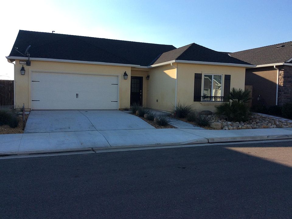 Newer Lennar home east of Clovis. Very open floor plan. 2 bedrooms with huge living roomPLUS a flex room (could be dining room, library or formal living area. Super clean. No maintenance yards, SOLAR EQUIPPED. 2 car garage. Beautiful kitchen with island. Granite counter tops with top of the line appliances. Beautiful tile flooring. Master has large walk-in shower. Tons of closets and storage. Cute patio areas. Very Quite & Nice neighborhood. Just steps away from the Clovis Walking Trail. Washer & Dryer included. A pet ":depends" Non smoking home! 2 year lease