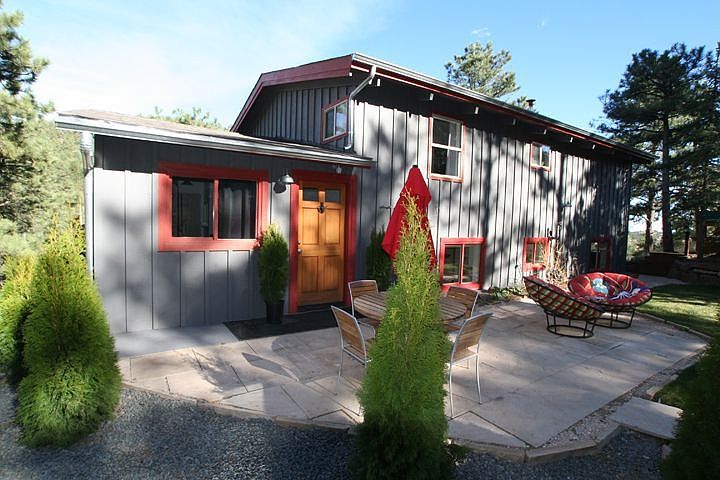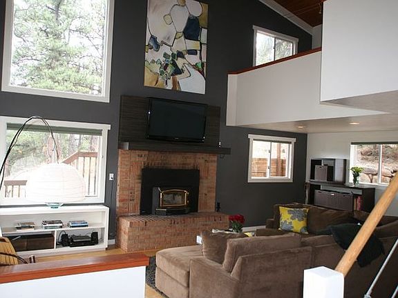 2 bedroom 1 1/2 bath plus bonus room plus office. NESTLED IN THE PINES FOUR MINUTES TO BROADWAY. Views, peace, quiet and seclusion...all minutes to town with easy access. This well located home is fully updated and move in ready. Vaulted ceilings, wood burning fireplace, huge deck, loft/study in house and studio above the detached garage make this a perfect retreat for those who want a mountain lifestyle without all the miles to drive to get to town. Open floor plan, hardwood and tile floors, butcher block counters, front and back patio spaces, and a clean modern design make this home ready to go. Neighborhood Description The neighborhood is private but we all know and help each other. There are families with very young children and pre teens as well as families without kids. It is very charming and authentic to Colorado with miles of private hiking trails right outside of the door. The neighborhood dogs all know each other and get along well. Very dog friendly neighborhood.