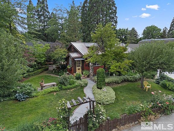 Welcome Home! Reno’s Enchanted Garden is ready for its new owners! This is your chance to own a beautifully unique, historic property in the heart of Old Southwest Reno! There are limitless ways to describe this home, between the historical significance of the property, the income-generating potential, and the updated modern interior behind the cozy cabin exterior, an urban retreat like no other, this is truly one of those “too much to describe” properties., The primary house has been updated and expanded over the years to its current 1410 sq, ft 3 bed, 3 bath configuration. Boasting an updated modern gorgeous kitchen with high-end appliances opening to a comfortable and cozy great room, this modern layout belies the historical look of the exterior farmhouse appeal. The primary bath is an escape worthy of a 5-star resort, marble surrounded jetted tub, large walk-in shower and updated cabinetry await the new owner. The secondary bedroom on the main floor is spacious, bright and airy with private access and fenced in private patio to enjoy the outdoors. This home also has a full basement with a living room, large bedroom and bath as well as a space for a kitchenette set up, this could truly be its own apartment if so desired. In addition, there are 2 other ADU structures on the grounds, one (the cabin) is a single room flat with room for a bed, and features its own sink and hotplate set up. The second unit (the cottage) has its own kitchenette and full bathroom, with a small bedroom with a full bed and a sleeping loft that will hold another full bed. Each of these units has shown a very strong rental history with each unit garnering over $1000 a month in rent. There is also an additional full bath on the property in its own outbuilding on the grounds, to accommodate the needs of the cottage tenant and/or hosted parties. And speaking of the grounds, you will be amazed at the work and attention to detail put into making this a truly “Enchanted Garden”, from the red brick pathways that wind through the property to the babbling brook that creates the peaceful serene ambiance not found in even the largest of yards. The sense of tranquility and peace truly creates a retreat that is nearly impossible to find in our urban environment. The historically relevant pieces scattered throughout add an appeal that cannot be described in print, from the porch beams that came from the historical Truckee flume to the diving board bar top taken from the old Sierra Motel where the Famous “Rat Pack” stayed in their heyday in the 40’s and 50’s when visiting Reno. The phrase “one of a kind” gets tossed around a lot, especially in Real Estate, but this home is TRULY one of a kind and waiting for its new owners. Don’t wait to schedule your private showing to view this unique opportunity.