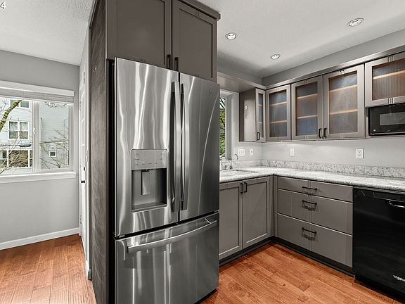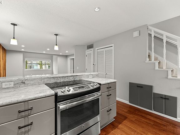 Deeded garage with storage and huge private balcony is only the beginning for this move in ready upper corner lot condo. Lucious tree setting near Forest Park & NW's cafe's, boutiques & entertainment. Cherry floors, granite counters. Open floor plan with primary suite on 1st floor with it's own bathroom. 2 bedrooms upstairs with Jack & Jill bathroom. Lots of closet & storage space throughout. Approximately 288 sf open rooftop patio plus a small deck off kitchen. In unit laundry. Beautiful common grounds around the entire complex.