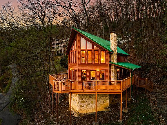 The view from this 2 bedroom 2 bath cabin awaits you. Tongue and groove throughout with wood floors. A wall of windows to take in the view of the Great Smoky Mountains. Two master suites, one on the main and the other upstairs. A loft overlooking the view has a pool table for your enjoyment. The wrap around porch provides plenty of outdoor living space and it has a hot tub. This gated community provides you with 24 hour security, a community pool, tennis courts and disc golf. Drive by a beautiful creek on your way to the cabin. The setting in this community makes you feel as if you are in the mountains.