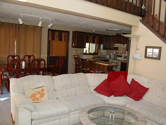 Country, charming chalet home. Open Floor plan with brick fireplace and cathedral ceiling..Huge family room for lots of fun. Screened in-porch.With 4 bedrooms and 3 baths there is enough space for family and friends. Great condition and very meticulous. Come take a look!A wonderful lake retreat.