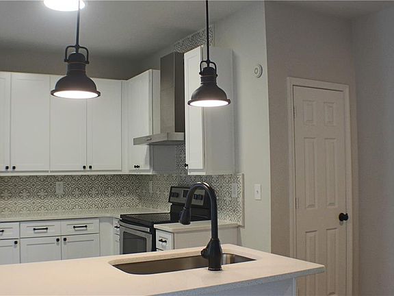 - Kitchen Features: Stone Counters, Kitchen Island, Cabinets White