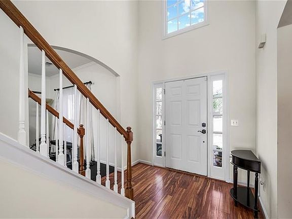 LOCATION! LOCATION! LOCATION! A beautiful EAST-facing cul-de-sac home located minutes from Hwy 141 in the desirable South end of Forsyth county is now on the market. As soon as you enter this gorgeous well-maintained home you are struck with "This could be the one"! From the 2-story Foyer to the level backyard - this home offers upgrades & enhancements to put it above all the rest! The custom eat-in kitchen has granite countertops, stainless steel appliances, large center island w/Breakfast Bar, & views to the bright and airy Family Room, perfect for entertaining. Immaculate  Hardwoods throughout the main. A separate Dining Room has tasteful architectural touches that include wainscoting & crown molding. Oversized Master on the 2nd has tray ceilings, HUGE Walk-in closet opening into gorgeous spa-like Master Bath with Custom vanity & tiled shower. Spacious secondary bedrooms have generous closet space and 1 has its own walk-in. The NEWLY redone 2 car garage has NEW Epoxy Floor, Garage Doors, & paint. At the end of a long day relax on the large open-aired patio and enjoy your spacious backyard. Professionally landscaped w/low maintenance plants give welcoming curb appeal without all the work. There's an extra locked storage room attached to the back of the house perfect for storing mowers, tools, and equipment. Awesome neighborhood amenities include a pool, tennis courts, playground, fishing in neighborhoods secluded lake, and a private walkway to Sharon Springs Park where you have access to the counties Baseball, Soccer, Lacrosse, walking trails, & much more. "Award-winning" schools and minutes from major store chains and shopping ~ this is perfection at its best!
