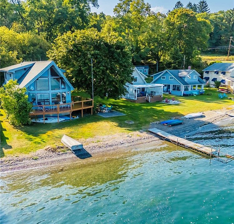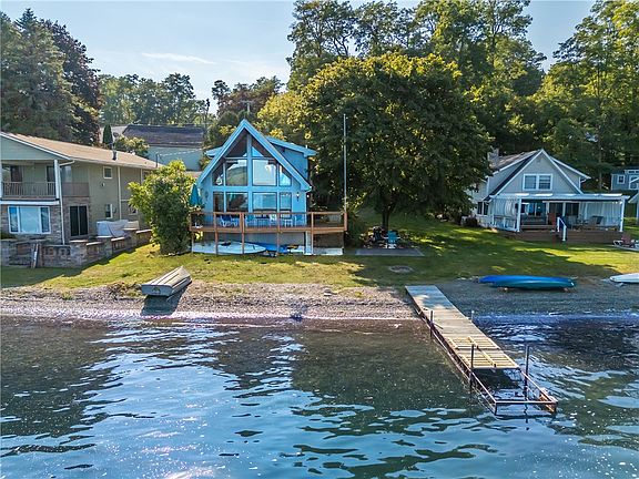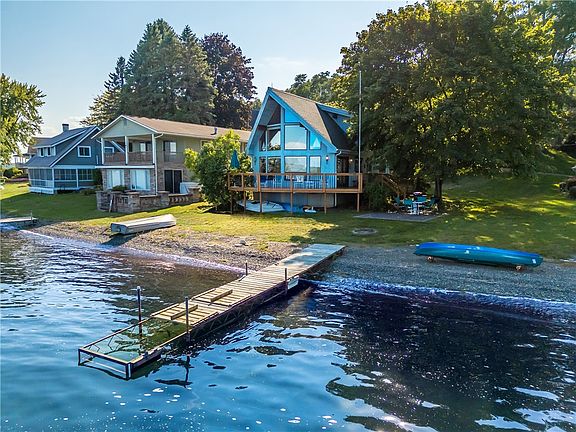 SPECTACULAR KEUKA LAKE! RARE LOCATION....THE "GOLD COAST" OF KEUKA LAKE WITH DRAMATIC NORTHERN VIEWS OF PENN YAN! 52' LAKE LEVEL WITH A SHALE BEACH & DOCK! SITUATED ON A PRIVATE ROAD OFF WEST LAKE ROAD FOR ADDED PRIVACY & PUBLIC UTILITIES. ARCHITECT DESIGNED LINDAL CEDAR CONTEMPORARY - CLEAN LINES MAKE A STRONG ARCHITECTURAL STATEMENT WITH FLEXIBLE & HIGHLY-FUNCTIONAL LIGHT-FILLED INTERIOR SPACES! THE HALLMARK OF THIS IMPRESSIVE LAKE RESIDENCE IS THE TWO STORY WOOD CATHEDRAL BEAMED CEILING GREAT ROOM WITH A WALL OF WINDOWS TO TAKE IN THOSE PANORAMIC LAKE VIEWS - FEATURING LIVING, DINING & KITCHEN OPEN TO AN ENTERTAINMENT SIZE WRAPAROUND DECK! 1ST FLOOR FEATURES FOYER ENTRANCE TWO BEDROOMS, BATH, & LAUNDRY. UPSTAIRS FEATURES A VERY SPACIOUS OWNER'S SUITE WITH A BATH, TWO WALK IN CLOSETS, PLUS ULTIMATE ELEVATED LAKE VIEWS! THIS ONE OF A KIND MINT LAKE PROPERTY HAS IT ALL, TOTALLY TURN KEY! THE VIEWS ARE AMAZING! ENJOY THE EVENING WITH THE GLITTER OF LIGHTS FROM PENN YAN! SHORT DISTANCE TO PENN YAN WITH GREAT RESTAURANTS & SHOPS & EASY ACCESS TO ALL AREAS IN THE FINGER LAKES REGION. AMAZING VALUE! FIRST SHOWINGS SATURDAY, 9-28-24 @ 11AM . SQ FT FROM FLOOR PLAN