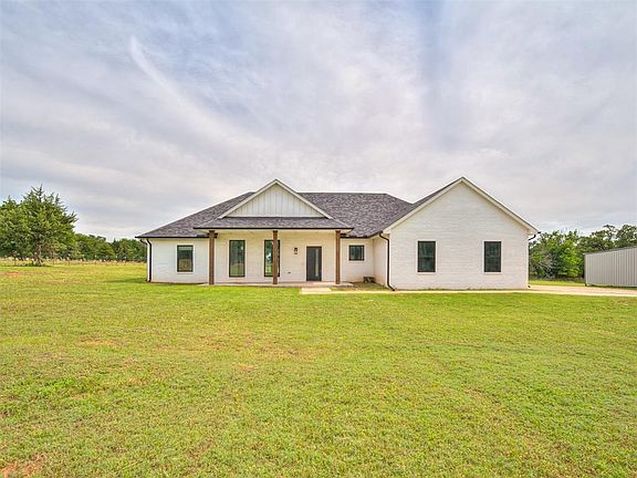 Are you looking for property that is secluded and still near shopping, grocery stores and highways? Well look no further. This modern/farmhouse style home sits on roughly 15 beautiful acres, offers 3 bedrooms, 2 bathrooms, with a 2-car garage, granite countertops with a large butcher block top island, no carpet or tile in this house, all stained concrete, plenty of storage and built-ins in all bedroom closets. Enjoy the nature while on your large, covered front and back patio, back patio has a gas hook up, and side of house has electrical for a pool. Acreage offers 2 chicken coops, a cow/sheep shed, 2 ponds. Do you need more garage or workshop space? This property has a 60x40 concrete shop with electric and 2 roll up doors, a 24x40 lean to, plumbing has been started in the shop, with buyer to finish if they choose. Easy to show so call today!