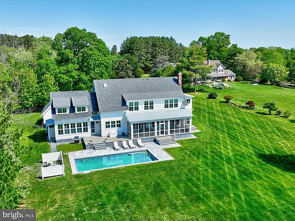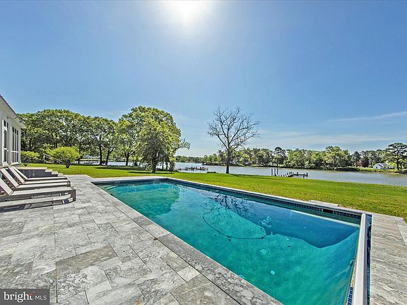 Stunning Ilex-built modern farmhouse set on over 3 acres along scenic Glebe Creek. This thoughtfully designed home features open-concept living with seamless sight lines from the kitchen through the dining area to the living room, creating an ideal space for everyday living and entertaining. A spacious screened-in porch extends from the main living areas and leads out to a waterside pool with an automatic cover and heater—perfect for enjoying indoor-outdoor living year-round. Just off the mudroom, a sunny family room offers a cozy gathering space. The main level also includes a private guest suite tucked away for maximum privacy, complete with a loft, ensuite bath, and its own screened porch. Additional highlights on the main floor include a powder room, a butler’s pantry with laundry, and a screened porch off the living room. Upstairs, the serene primary suite features a beamed ceiling, custom built-ins, an elegant ensuite bath, and a private sleeping porch. A separate children’s wing includes two charming bedrooms, each with dual built-in beds, and a shared bath. Two additional bedrooms, a hall bath, a walk-in linen closet, and a laundry closet complete the upper level. Outside, a detached three-car garage includes a converted bay, now serving as an exercise room. Enjoy waterfront living with a private dock featuring a floating dock, riprapped shoreline, and picturesque pool area—everything you need for a peaceful retreat or active lifestyle. Easton, Maryland, known as the New Hamptons of the Chesapeake Bay by Forbes Magazine, is conveniently located 1.5 hours from D.C. and Baltimore, and 2 hours from Philadelphia. Just minutes from fine dining, shopping, healthcare, theatres, galleries, museums, golf courses, a country club, a yacht club, and a jet airport.