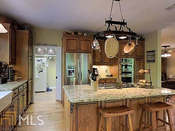 This home is 4-sided brick! Main level features hardwoods throughout, master, guest bedroom, 2 full baths, office w/built in bookcases. Large eat-in kitchen updated w/granite, SS, farm sink. Laundry rm off kitchen. Open living & dining area w/stacked stone, wood burning stove. Screened back porch w/hanging day bed. 2 car attached garage. Upstairs features 3 BR, 2 baths, sitting area. Daylight Basement is 2288 sq. ft. and is partially finished w/half bath, workshop area, drive under garage. Property consists of fruit orchard w/pear, peach, apple trees & 150 blueberry bushes that can supply $, vegetable garden, chicken pen - all electrical fenced. Pole barn & garden shack have electricity & water. Garden shack can be used as produce stand, playhouse - endless possibilities! **One year home warranty will be provided for new owner.