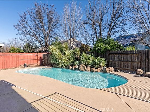 Welcome to your dream home! Nestled on a spacious corner lot, this meticulously maintained property boasts a sparkling pool with a tranquil water feature, perfect for cold plunges or summer relaxation. The open floor plan invites you into a bright and airy living room, complete with a vaulted ceiling, cozy gas fireplace and an abundance of natural light. The kitchen, a true chef's delight, offers plenty of counter space, an eat-up bar, and updated stainless steel appliances, including a newer cooktop, oven, and dishwasher. Retreat to the large primary bedroom featuring a coffered ceiling, an ensuite bathroom, and a private slider to the backyard oasis. The beautifully landscaped front and backyard provide a serene setting, complete with an extended concrete patio and covered area, ideal for entertaining. With recent updates like fresh interior paint, new carpet, a newer A/C unit, water heater, and pool equipment, this home offers modern comfort and style. Located close to shopping, restaurants, and top-rated schools, this home combines convenience with luxury. Don't miss the opportunity to make this updated move-in ready home your own!