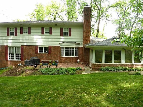 Classic character abounds in this quality built Colonial home located on a spectacular wooded 3/4 acre lot bordering Getz's Woods to the rear. Beautiful brick front porch, 2 story foyer, huge family room with cathedral ceiling, 2 sided fireplace and adjoining sunroom. Custom kitchen with solid surface counter tops, newer appliances and tile backsplash and floor. Kitchen eat-in area features a bay window and fireplace. First floor office with built-in book cases. Finished basement features a large family room with a fireplace and 1/2 bath, plus a finished rec room. Large master bedroom with a remodeled master bath. Other features include Pella windows, 3 zone heat plus updated flooring, bathrooms and central air.