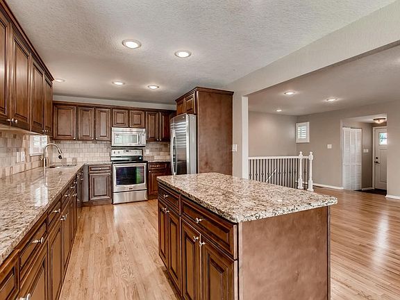 This updated brick ranch is located within walking distance to Streets of SouthGlenn and Goodson Rec Center. The house sits on a large 1/4+ acre lot that backs to Big Dry Creek, allowing for no neighbors behind you and an easy walk / stroller / run / bike to deKoevend & Cherry Knolls Parks as well as the Highline Canal Trail. On the main floor this home features an open concept kitchen with ample cabinet / countertop space and adjacent dining & living room, 3 beds & 2 baths plus an enclosed sunroom not included in the MLS sq ft. Downstairs holds a large family room, 2 beds (with egress windows), bonus room / office, 1 bath & huge laundry / storage room. Newer updates include matching stainless appliances, windows, A/C, furnace, hot water heater & radon system as well as plantation shutters in all rooms. There is no HOA in this neighborhood, ample space for parking an RV / Trailer on the left side of the garage behind fence.