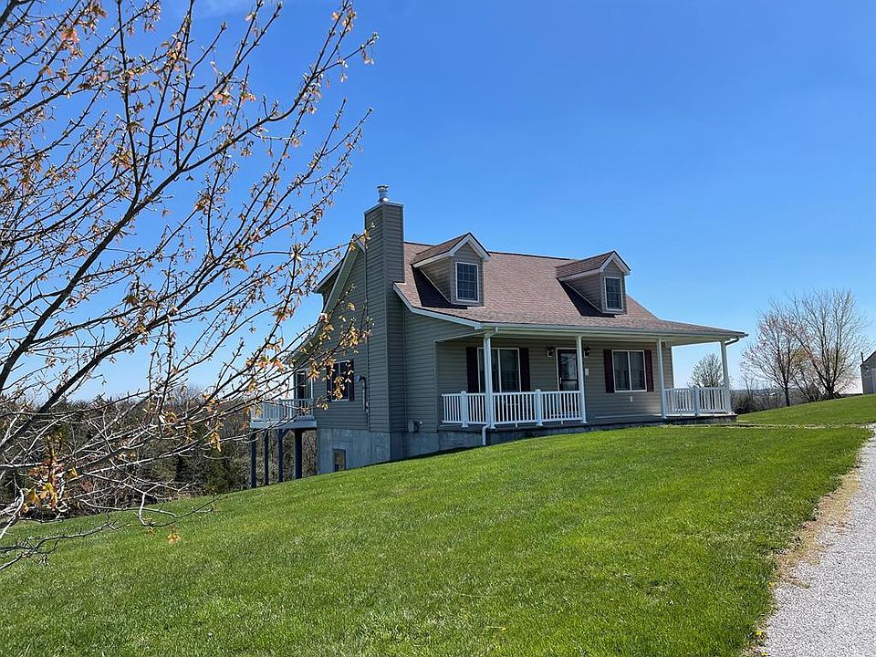 Cape Cod style home sitting on Approx +/- 19.454 acres. Open concept from kitchen and living room. Pellet stove in living room for the cold nights. Sun room off of kitchen with adjoining laundry room to outside. Possible 4th bedroom upstairs. Deck on back of home overlooking nice clean stocked pond and woods. Exterior building with concrete floor and 3 big doors, great views