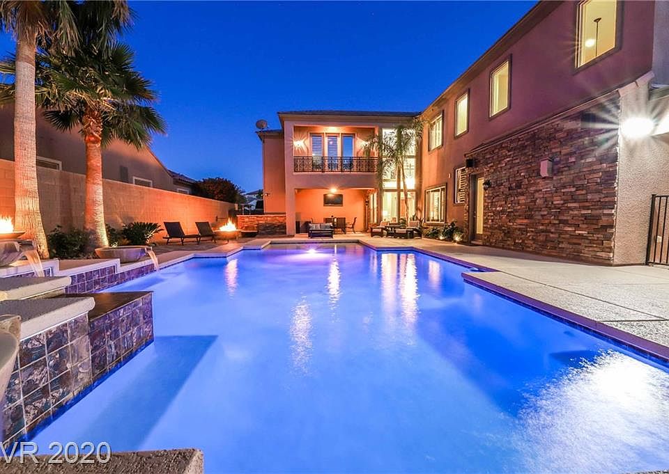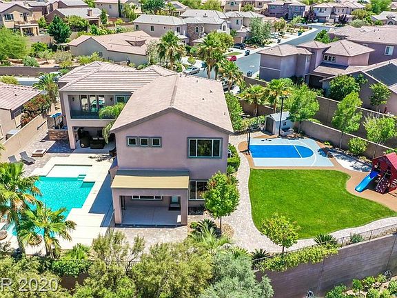 This FURNISHED 4,071 sq ft dream home located behind the gates of Anthem Highlands, sits on over 1/3 acre & offers exquisite landscaping w/ endless types of palms trees! Private lot w/ 4 bed, 4 bath, loft & casita! Resort-style custom pool & spa w/ fire pits & waterfalls, 1/2 court B Ball w/ lighting, grass area, playground w/ TotTurf & designer sand box! No expense spared; Kalco lighting, surround sound, Merillat cabinets & private dog retreat!