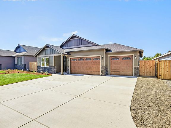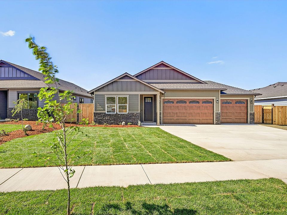 Stunning new home with upgrades throughout! Features a spacious 3-car garage with 8' insulated doors & quiet side-mount motors. Enjoy 9' ceilings, vaulted living room, engineered hardwood flooring, and split floor plan. The gourmet kitchen boasts quartz countertops, gold-accented GE Cafe appliance package (inc fridge), soft-close cabinets, under-cabinet lighting, a pot filler, and cast iron Kohler farm sink. The luxurious primary suite includes coffered ceiling with fan, dual walk-in closets, double sinks, walk-in quartz surround with glass doors. Tile floors in laundry and bathrooms. Tech-forward with EV-ready panel, Ring doorbell, Ecobee smart thermostat with full WiFi/smart home compatibility. Relax on the covered back porch overlooking a fully landscaped yard with sprinklers and drip system. Extras include an electric fireplace, solid interior doors, full wood-wrapped windows, and extended driveway. A must-see blend of style, comfort, and efficiency! Agent related to seller.