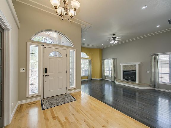 Immaculate single level charmer! Walk to Bear Creek Park. Grand entry welcomes you into a sunken living room with 12' coffered ceilings and fireplace. Office is private. Master suite is spacious with his & hers vanities and his & hers walk-in closets. Gourmet kitchen with large dining area, great for entertaining. Split bedroom. Backyard is lush and private with mature landscaping and multiple fruit trees (cherry, apple, pear), Hot tub.