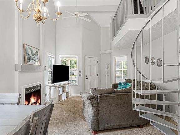Charming villa-style home with a welcoming covered entry, perfectly designed for roommates or guests with two en-suite bedrooms on the main level. The vaulted great room with a cozy fireplace opens to a bright kitchen featuring a breakfast bar, gas range oven, built-in microwave, dishwasher, and refrigerator. A striking spiral staircase leads to a spacious loft with a skylight—ideal for a home office, media room, or additional sleeping area. Don’t miss the extra storage closets in the loft, perfect for keeping things organized. Enjoy outdoor living on the private backyard patio. Located on a quiet cul-de-sac, with front yard and common area maintenance covered by the HOA. Incredible location—walkable to restaurants, shopping, Swift-Cantrell Park, and downtown Kennesaw. Just minutes from KSU and I-75. This price is "AS IS" NO RENTAL RESTRICTIONS!