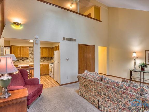 Don't waste any time to see this 2 story condo located in Sylvania schools! 1 bedroom on the first floor, a second bedroom and a loft/den on the second floor with a private entrance to 2 full baths from each bedroom. The condo also features a spacious living room/dining room with a dramatic vaulted ceiling, along with a 9ft. French door to the private patio. The loft/den has a balcony overlooking the living room/dining room. Kitchen is oak with plenty of countertop space for meal prep and a pantry. There is also a 1st floor laundry off the kitchen. The home also includes a home warranty!