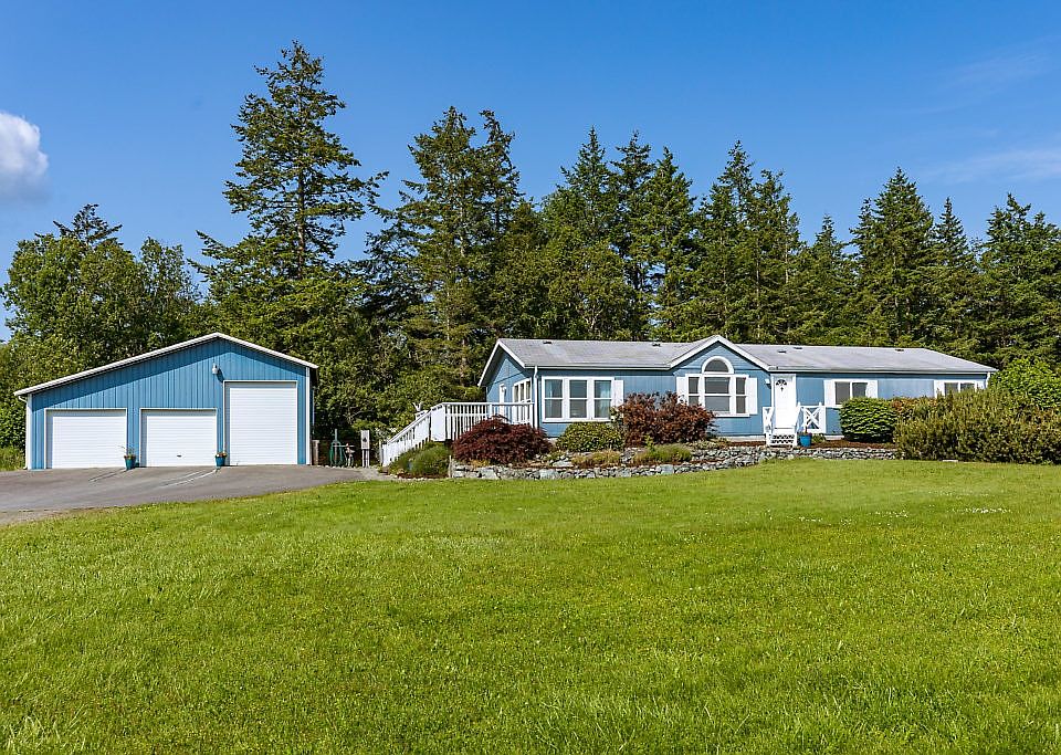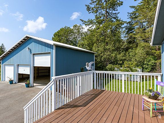 Beautiful impressive views of Olympics, Sound & Countryside from this Lovely level 5 acres. Mostly pasture w/ woods behind for privacy. 3 bedrooms, spacious home w/ natures beauty coming through every window. Master suite has personal deck w/ hot tub, also access to outside from Utility room & main bath, huge deck off Kitchen for outdoor entertaining & BBQ. Open bright Vaulted Living, Dining and Family rooms. 1080 sqft detached garage/shop. Lofted area for storage and one bay has RV door.