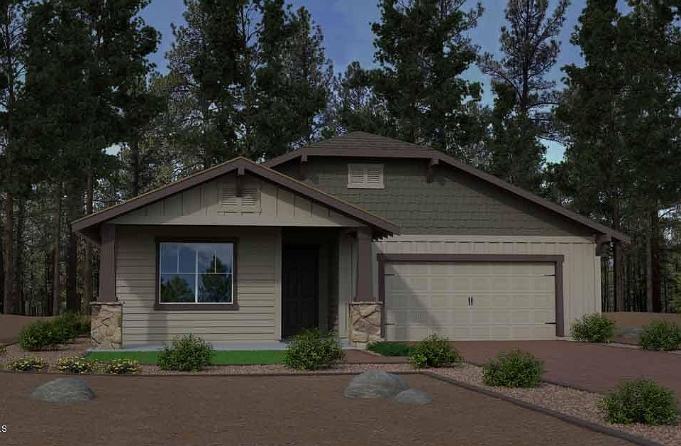Welcome to Crestview! This is Flagstaff's newest community with 120 single family detached homes. You will love the front covered porches, tall Ponderosa Pines and only 5 minutes from historic downtown Flagstaff. This home is 1720 sq. feet, 3-bedrooms, 2-baths and a 2-car garage. The living area is one big great room including dining. There is available guest houses and expanded garage choices on some of the lots as well. These are all very good sized lots 62-wide and 106-feet deep on average. $25 HOA fee. The price does not include lot premiums or selected options. To be built home. Other plans are available on this lot; other lots and plans are available.