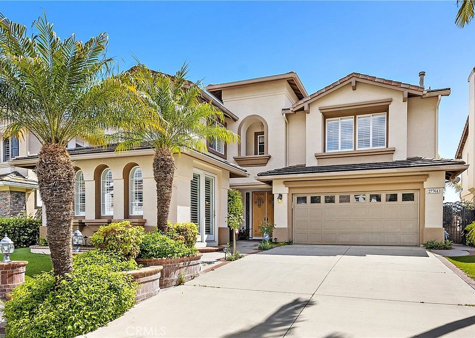 Welcome to 27761 Manor Hill Road, where luxury living meets breathtaking panoramic views in Laguna Niguel’s prestigious guard-gated San Joaquin Hills community. Perched on a premium view lot, this executive-class residence boasts ever-changing valley, hill, and city light views that culminate in extraordinary sunsets, enriching both the indoor and outdoor spaces. The expansive backyard, designed for entertaining, is framed by the stunning vistas and features a built-in BBQ, seating area, and a shaded patio – the perfect spot to soak in the beauty of Southern California. Inside, this meticulously maintained home spans approximately 3,812 square feet, offering a seamless blend of elegance and comfort. The main level impresses with a grand formal entry, soaring two-story ceilings, and an abundance of natural light. A gourmet kitchen serves as the heart of the home, complete with charming cabinetry, a center island, granite countertops, walk-in pantry, and newly upgraded stainless-steel refrigerator, oven and microwave that functions as a convection oven. A cozy breakfast nook opens to the inviting family room with a fireplace, creating a warm and welcoming space for relaxation. The home’s two primary suites provide luxury and privacy. The main-level suite features a private entrance and retreat area, while the second-level suite boasts a private view balcony, jetted tub, oversized shower, double vanity sinks, and a large walk-in closet with pull-down attic access for extra storage. Two ensuite guest bedrooms and an oversized den/entertainment room with built-in cabinets and a fireplace complete the second level, ensuring ample space for family and guests. This home is packed with modern upgrades, including newly installed carpet on stairs and guest bedrooms, flooring on main living areas and primary suite on second level, and recess lighting in family room. Additional highlights include solar panels, new AC and heating systems, central vacuum, reverse osmosis filtration, a water softener, and a garage with built-in cabinets, overhead storage, and an instant hot water heater. The San Joaquin Hills community offers resort-style amenities, including two pools and hot tubs, a gated playground, picnic area, a basketball court, and 24-hour guard-gated security. Located just a short drive from world-class beaches, luxury resorts, shopping, dining, golf course, and award-winning schools, this exceptional property is not only a home - It's a lifestyle. No Mello Roos.