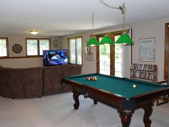 Looking for country living close to town? Take a look at this four bedroom custom walkout ranch with 3,800 finished sf on 6 wooded acres, 300' back from the road on a circular driveway. Walk from a spacious entry into a Great Room with a wall of windows offering a stunning view of the woods. Main level features the Great Room with fireplace, Master Suite, Library, 2nd bedroom, 2 bath areas, formal dining and Eat-in kitchen with a center island, Quartz counters, SS appliances, pantry, laundry and 4 Seasons Sunroom. Lower level with large family room, wet bar, Atrium Door to patiio, office, 2 additional bedrooms, 3/4 bath and lots of storage. Highly efficient Geo-thermal Heating and Cooling system, 2x6 construction, brick/cement exterior, radon Mitigation system, security/fire alarm system plus 4+ car garage and 16x10 storage building. Make your appointment today.
