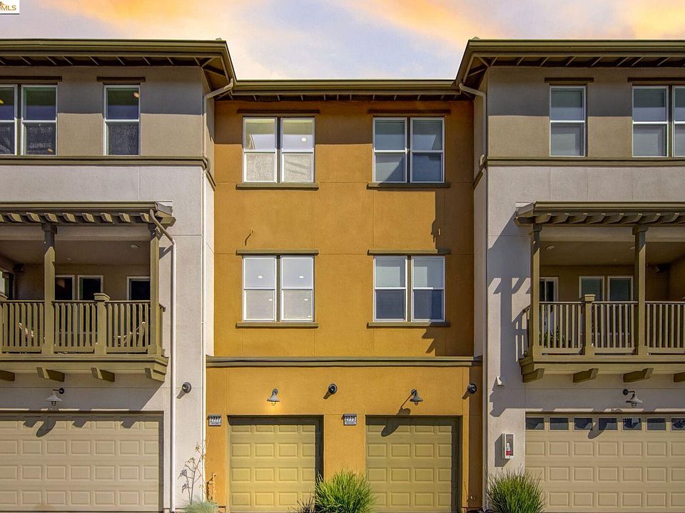 Indulge in the luxury of this meticulously crafted home. Beyond the inviting entryway of this rare END UNIT lies a sanctuary of refined living, where the spacious open-concept layout and soaring 9-foot ceilings create an atmosphere of airy grandeur. As you ascend the stairs, it effortlessly merges from the expansive entryway to the heart of the home—a harmonious fusion of kitchen, dining, and living spaces. Here, light dances through the windows, illuminating the elegance of the surroundings and beckoning you to step out onto the secluded patio, where breathtaking peek-a-boo city views await. Venture up the third floor to discover the epitome of tranquility in the primary bedroom, complete with an ensuite bath and a spacious walk-in closet, offering a serene retreat from the bustle of daily life. Adjacent, a second bedroom awaits, graced with its own private bathroom and captivating neighborhood views, ensuring both comfort and privacy for you and your guests. Venture outside, and you'll find shopping and restaurants across the street, making daily errands a breeze. And if work or adventure calls you to downtown Oakland or the city, you're in luck: easy access to the complimentary BART shuttle, Spirits Alley, SF Ferry, and major freeways opens up a world of possibilities.