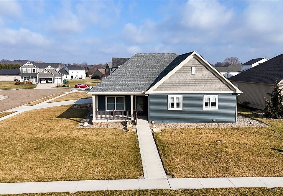 Incredible custom built Rembrandt home with every imaginable upgrade! Design home quality custom kitchen with Amish built cabinetry, 8-foot kitchen island, quartz countertops, rollout & slow close drawers, undercabinet lighting and high-end appliances. The kitchen is flanked by a 13' x 9' pantry with built-in shelving and dog shower. The kitchen opens to the great room with a custom-built TV/fireplace cabinet. The dining area has 11 ft custom-built coffee bar. Incredible master suite with walk-in closets, 5-foot shower, Amish cabinetry, double sinks, granite countertops and access to the laundry room. Even the huge laundry room has Corian countertops and under cabinet lighting! Coveted split bedroom design with 9 ft ceilings throughout. Sliding doors off the dining room open to a 24' x 14' screened in porch leading to a privacy fenced courtyard with a 14' x 14' patio. Full basement plumbed for another bath with an egress window. Oversized garage with heater, utility tub and Rubbermaid wall tool rack. This home was built with accessibility in mind. There is a concrete ramp to the front door and zero entry to the garage. Thoughtful updates include: lawn sprinkler system, generator, custom window treatments, whole house air cleaner, reverse osmosis and water softener, tankless water heater, oversized gutters, stone foundation band, solid core doors, Schlage hardware, 200 amp service, multiple dimmers and luxury vinyl plank throughout the house! This home was designed for efficiency and comfort. Conveniently located in Lake Township's attractive Heritage Glen development. Enjoy all of the benefits of new construction without any of the hassle!