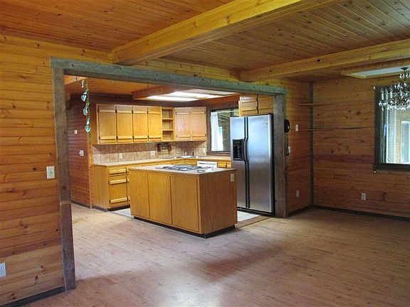 This well built log home is ready for you and your family to enjoy life at the lake. Open floor plan, an island in the kitchen, 3 bedroom, 2 bathrooms, on 4+ acres, just minutes to Deep Lake and tons of recreational opportunities in the area. This area is well know for hunting, fishing, hiking, skiing both snow and water. There is an additional mom-in-law 1 bedroom home, reverse osmosis water filtration system, central heat and air conditioning. 2 car fully insulated detached garage with tool sheds for extra storage, along with a barn and corral. All new waterproof vinyl plank floors (installed 12-2020) and lifetime warranty windows (installed 1-2021). Large high fenced garden area with raised beds, established blueberry and raspberries. The mother-in-law home is completely updated with new lights, plumbing, flooring, cabinetry and countertops. It has a new stove and new under counter refrigerator along with washer and dryer hookups and a fireplace. A rare find! One of very few homes in this area with 2 homes on the same lot. New density regulations allow only one home per lot. This one is grandfathered in to have the two existing homes. Rear property features rock formations that help keep wind to a minimum. Beautiful area in all seasons. Price includes 1.35 acre lot directly to the East.