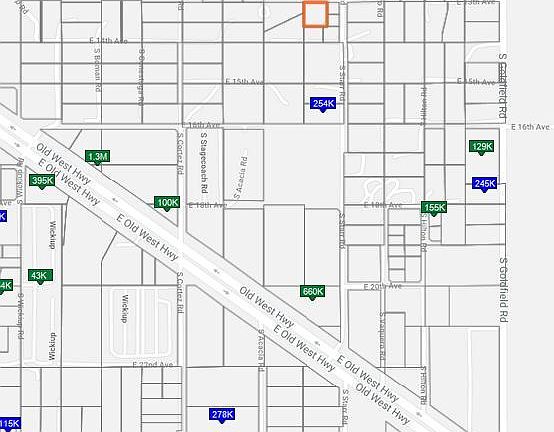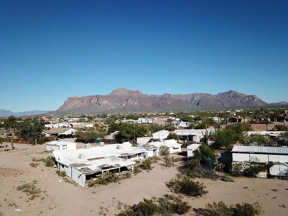 LOTS OF POTENTIAL for this large parcel - just under an acre! Gently sloping and square in shape - 195' wide and 198' deep. Custom homes in area that is changing to residential only per the current zoning. This property used to have 6 apartments plus some other structures but zoning only allows one residence now. ''As-Is'' structures need to be removed. Great views of the Superstitions and just a short distance off the paved road on Starr. 2 septics on property currently. Great location in area of improving values!