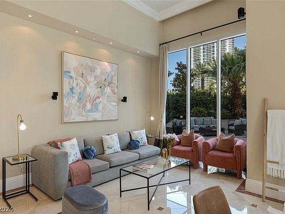 Welcome Home! This ground-floor garden villa showcase an enormous private patio providing a rare opportunity to enjoy the spacious indoor-outdoor living & picturesque views of the mature landscape gardens. With unique upgraded features such as almost 14' vaulted ceilings, marble flooring, high-quality appliances, the home offers the comfort of a traditional residence with the luxury amenities of a high-rise A list tower. Create your own oasis in this distinctive residence. The HOA fee includes: water, cable, gas, internet, valet, concierge, limousine, security, management &+. The Stirling Club is located on the property grounds, a private membership club offering full spa service, salon, barber shop, massage, nails, facials & other treatments. The club features a well appointed gym, pilates & yoga classes, tennis/pickle ball courts, sauna, indoor & outdoor pools, gourmet restaurant, bars, cigar lounge, Starbucks, wine cellar & tasting room, large spaces avail for private functions.