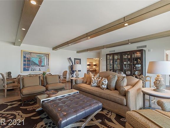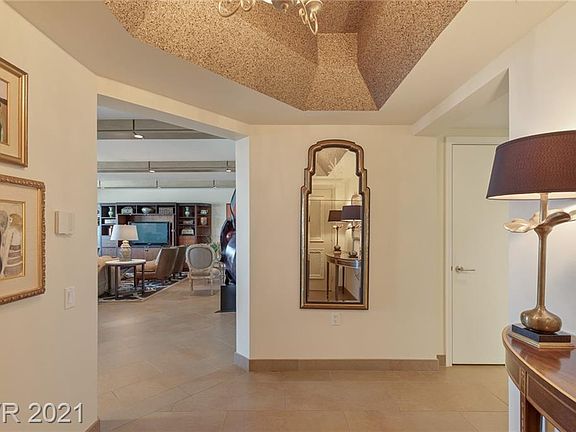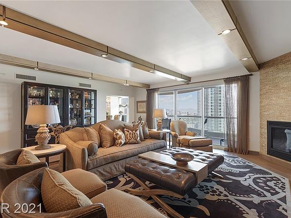 One-of-a-kind fully furnished high-rise residence. This Unique home in the skies offers a large & spacious interiors. 2,805 sq.ft. Floor to ceiling windows plenty of natural lighting. Enormous Terrace view of Las Vegas Downtown, Golf course & mountains. The smaller veranda has strip & the Stirling club view. Professionally designed upgraded finishes, custom built cabinetry & closets throughout, 3 bedrooms, 3 bathrooms. The HOA covers: limousine services, concierge, valet, pool, gym, gas, water, sewer, trash/recycle, cable, guest suite avail (for a fee. Additionally on property, the Stirling club, a private facility Starbucks, spa, nails, hair salon, gym, pilates, cycling, tennis, pickle-ball, in/outdoor pools, jacuzzi, steam & sauna. His/Hers lockers & private lounges. Restaurant, cigar lounge, ballroom lounge, wine cellar, meeting rooms & more. Minutes to Las Vegas BLVD, shops, airport & convention center. Deed 1 car garage spot & 1 storage unit. You may valet your 2nd car.
