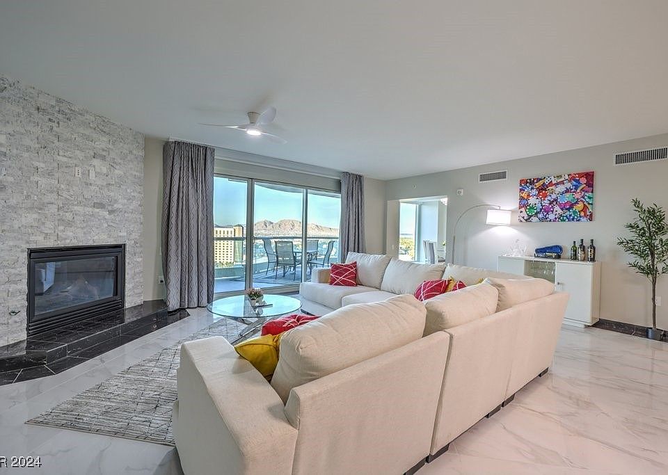 Discover the epitome of elegance of Residence 1502, in the heart of Las Vegas. This recently remodeled 2-bedroom with sitting/office room , 3-bathroom home spans 2,805 sq. ft and is offered fully furnished for $1,068,000. The primary suite features a serene setting with an office in the adjacent room, perfect for unwinding and working in style. The modern remodeled kitchen and open living spaces are designed for both comfort and sophistication.