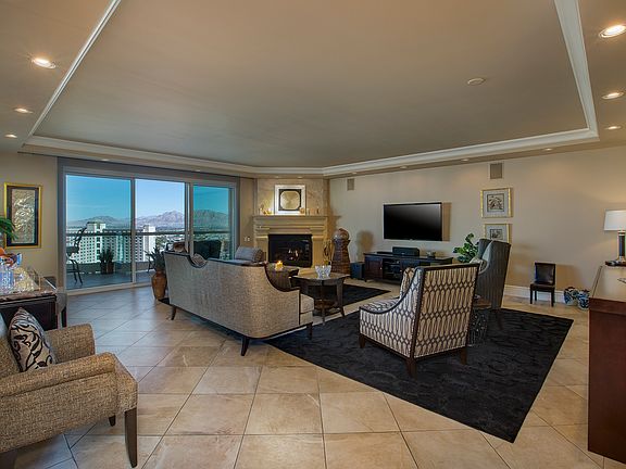 Welcome home to luxury in the sky. Immaculate and shows like a model. Spacious three bedroom, three bath has two balconies with amazing views of strip, golf and mountains. Features 2,805 square feet with the highest level of craftsmanship with custom granite counter tops, cabinets, ceramic flooring and crown molding throughout. Far superior to any other unit.