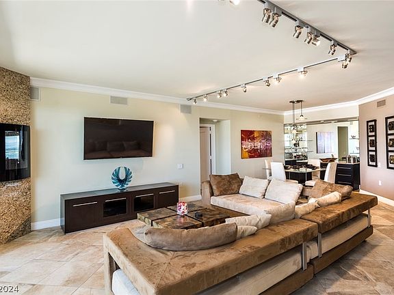 TRULY MAGNIFICENT, SPARKLING CLEAN, BRIGHT AND AIRY! HIGH FLOOR WITH GORGEOUS MOUNTAIN, GOLF COURSE AND STRIP VIEWS!!! FULLY FURNISHED TURN KEY UNIT, OPEN KITCHEN TO GREAT ROOM WITH PORCELAIN FLOORS AND CARPET IN THE BEDROOMS, MARBLE FLOORING IN THE BATHROOMS, BUILT IN BAR IN THE GREAT ROOM, BUILT IN TV'S IN EVERY ROOM, ELECTRIC SOLAR SHADES THROUGHOUT, CUSTOM FIREPLACE AND MUCH MUCH MORE