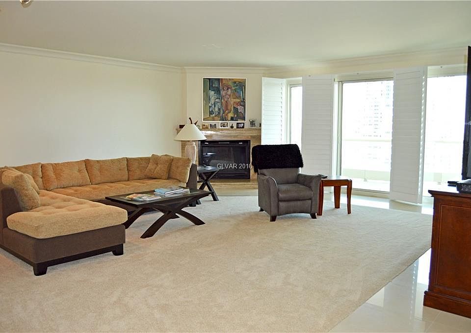 ABSOLUTELY STUNNING GOLF*STRIP*CITY VIEWS AT EVERY FLOOR TO CEILING WINDOW*HIGHLY UPG 3 BED 3BTH E UNIT*Elevator Opens to residence*EXTRA HIGH CEILING CROWN MOLDING* TILE*FIRPL*GOURMET KTCHN*WINE COOLER*CUSTOM CABINET*ELEGANT GRANITE*STAINLESS STEEL APPLIANCES*SHUTTERS*BUILTIN FRIDGE*W/D*2 balconies*2 mstr walk in closet*W/D*2 PARK SPACES*also for rent 3300 per month