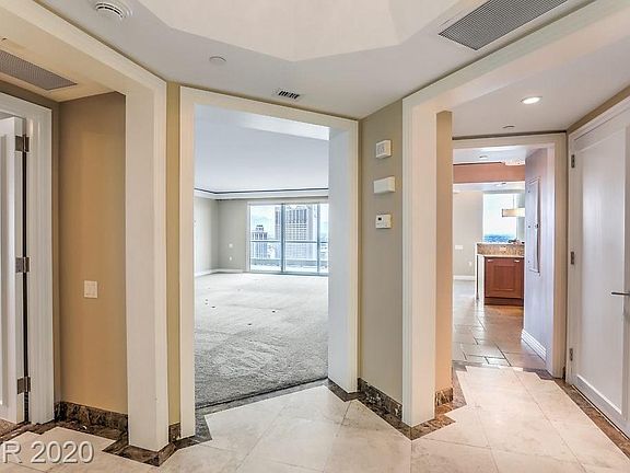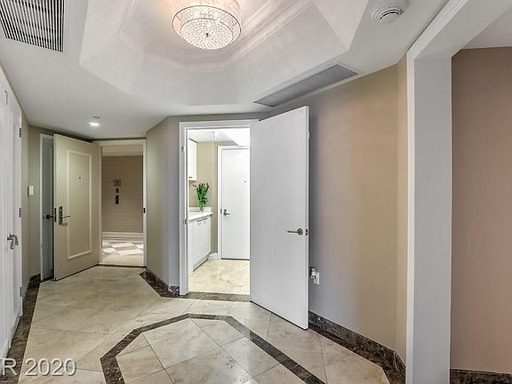 The best at Turnberry Place. Premium height & views on the 25th floor. Sought after floorplan showcasing almost 2,200 sq.ft. Large living room, dining & kitchen, 2 spacious suites, powder & a laundry room. Enormous balconies, strip, downtown, mountains & city views. The unit is deed w/parking space & a storage unit.HOA Covers; Water, Gas, Trash, Recycle, Sewer, Security, Concierge, Valet, Gym, Pool, BBQ, Pet area, Limousine services & More.