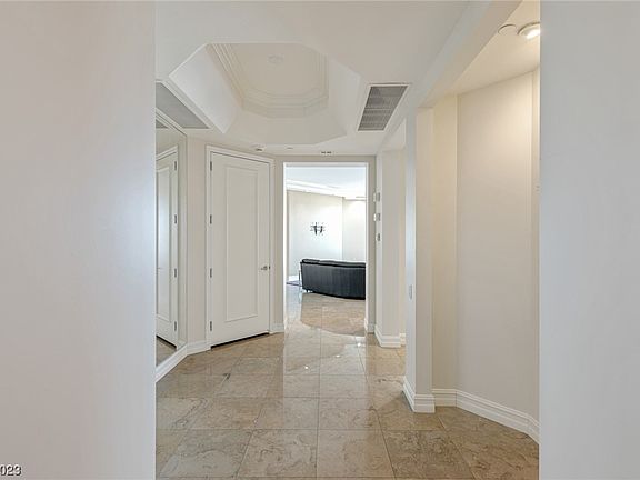 Beautiful Turnberry Place condo with mountain, city, and strip views! Watch the mesmerizing images of the Sphere anytime from this unit! Penthouse level with floor to ceiling windows. Gaggeneau stovetop/oven/dishwasher and Subzero refrigerator in the gourmet kitchen. Primary and secondary bedrooms both have ensuite baths and walk in closets. Extra secure storage located nearby the unit's garage parking spot.