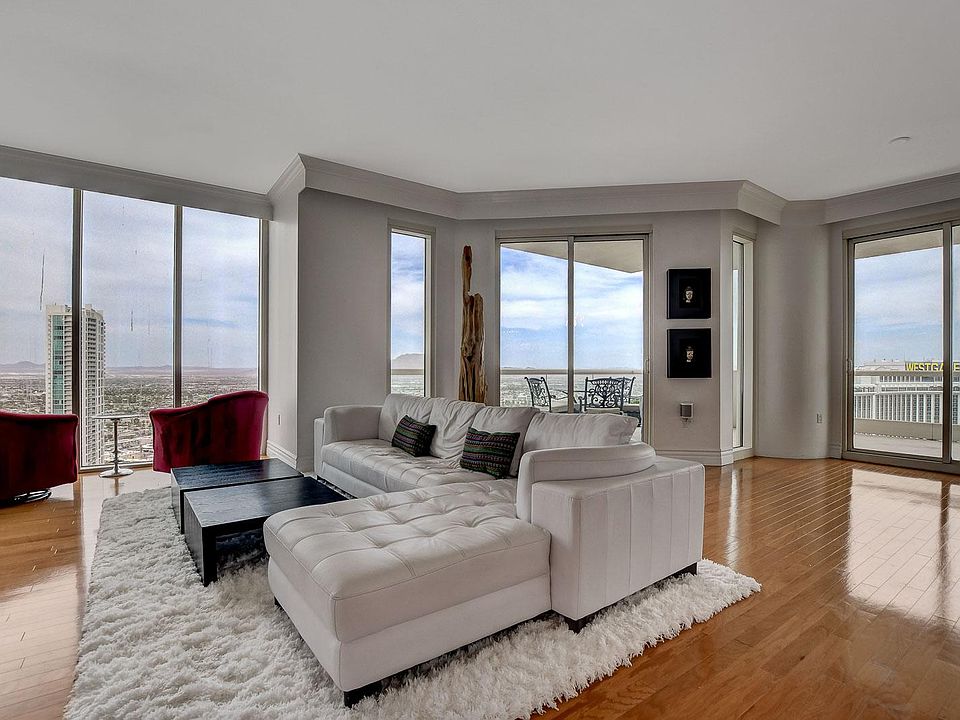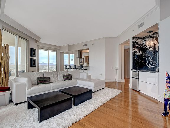 Fully Furnished & Gorgeous. 33rd Floor Offering Expansive Views Of The City & Mountains & Las Vegas Country Club Golf Course. 10ft Ceilings & Wrap Around Balcony. Gorgeous Lobby/Gym/Pool. Guard Gated Entry, Security, Concierge, Valet & Secure Elevator Access W/ Only 2 Units Owners Having Access To Each Floor. Guest Suites Available, Exercise Room, Pool Area W/ 2 Grilling Kitchens & Outdoor Fire Features. Directly Behind The Las Vegas Strip W/ Easier Access. Four Fold Security With Guard Gate/FrontDesk/Locked Door To Elevators & Fob That Only Works For TWO Units Who Share The Same Floor. Optional Membership To Stirling Club Located At The Center Of The 4 Towers. Easy Move-In Ready. Renter pays electric & gas. No smoking or pets. Owner managed and tenant can discuss all terms with owner
