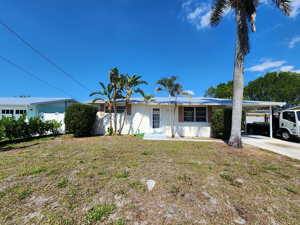 This 2-bedroom, 1-bathroom home is located in Naples, Florida's Art District, close to bars and 10 minutes from the beach. It sits on a canal with Gulf access and has a dock for parking a boat. The property includes a carport and a driveway leading to the backyard. Available for move in right away!