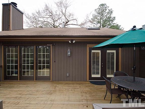 Very well maintained and move-in ready ranch home in the unique Sans Famille neighborhood. Many recent updates including interior and exterior paint, solid oak floors, plantation shutters, windows/storm doors, appliances, cabinet hardware and deck floor. Plenty of storage in crawl space and storage room. Nicely landscaped with a variety of plants. Very convenient to Rex Hospital, parks/greenway and shopping. Membership may be available at nearby Meredith Townes Pool.