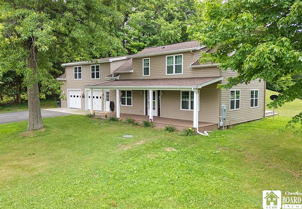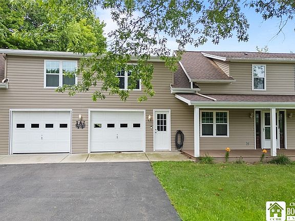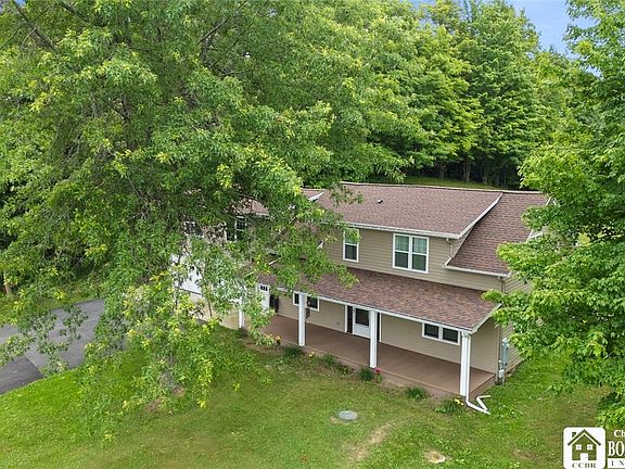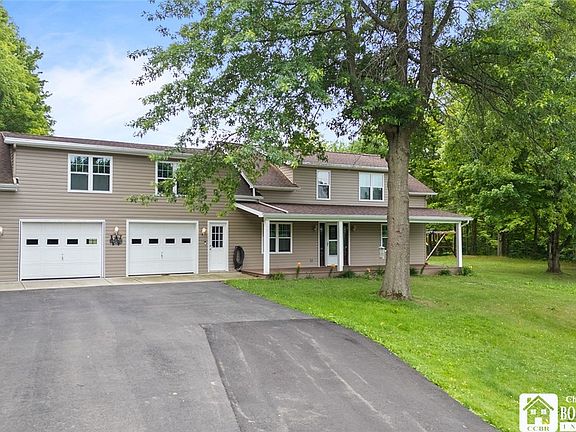 Welcome to this beautifully updated 5-bedroom, 2.5-bath home in the Town of Sheridan, nestled on 3.3 scenic acres! This spacious home features an open floor plan, a modern kitchen and bathrooms, and a large primary suite with a walk-in closet. Convenient second-floor laundry and all appliances are included. Enjoy the outdoors from the inviting covered front porch or the expansive back deck overlooking the wooded yard and bordering creek. The oversized attached two-car garage provides plenty of space, and the large pole barn—accessed by its own driveway—offers a loft, 200-amp electric service, and is in excellent condition. A fantastic property offering comfort, space, and privacy!
