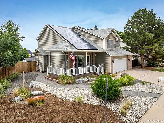 Come see this beautiful home with stunning mountain views from several windows and large back deck. Livingroom with large window seat. Newer light fixtures. Stunning kitchen with island, granite countertops, pantry & newer LG Appliances. Family room with gas fireplace. Main floor laundry room and ½ bath. Luxury vinyl flooring throughout 1st and 2nd floor. 2nd Floor you must see the large 2 bedrooms and primary bedroom with sitting deck to enjoy the mountain views & sunsets. Primary bathroom is partially updated with walk-in shower with rain head, seat and handheld. Basement is finished as one big room ready for crafts, playroom or game room and ¾ bath. Central Vacuum. Lennox Pure Air Purification system. 2 ½ car garage with work bench, laundry sink and service door. Extra off-street parking. Backyard deck is 13'x22'. Newer windows in 2020! South facing for solar making and snow melt. No HOA! 2 houses from large park with playground. Carefree living with the xeriscape front yard and turf backyard installed in 2022. Hyland Hills Recreation District! Priced to Sell, hurry to see!