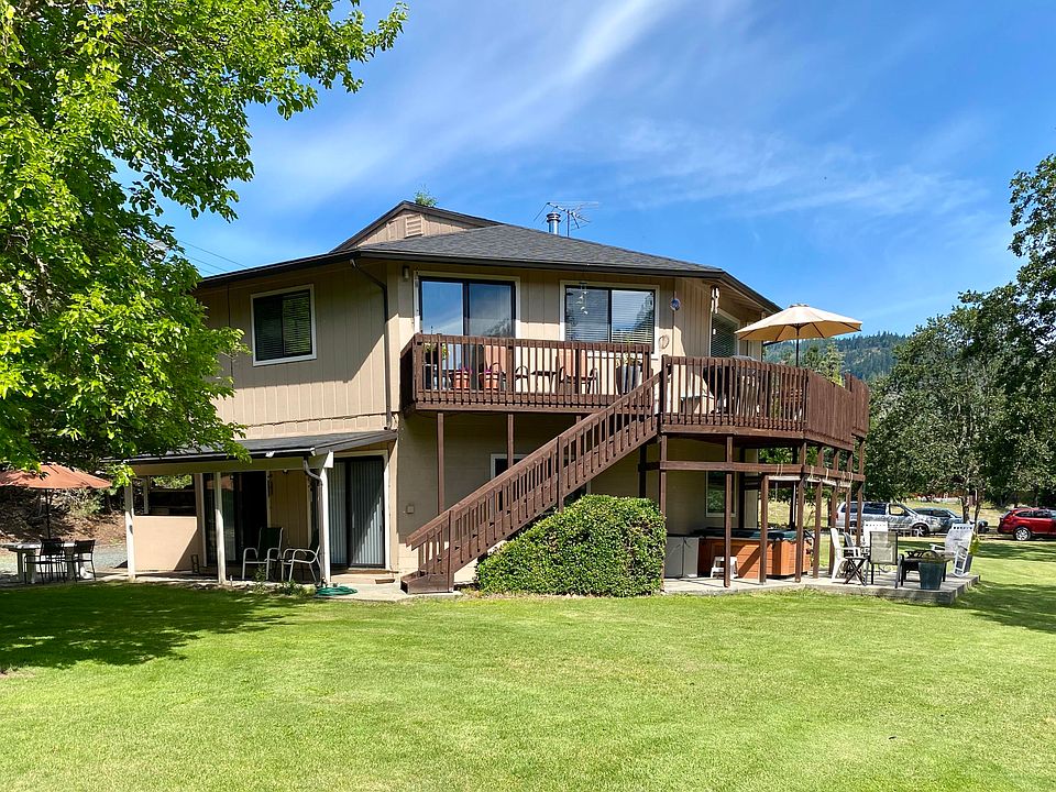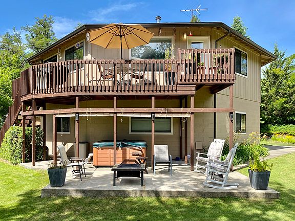 This 2594 sq-ft architectural delight sits on a rural park-like .75 acres and yet is close to town. Enjoy your morning coffee on the deck or hot tub overlooking a year-round creek with scenic mountain views. This well-maintained home has a 2-car attached garage, 3 bedrooms, 2 bath on the main floor with a finished basement that has 9-ft ceilings, kitchen, living room, 2 bedrooms, bathroom and a laundry room with a separate entrance that could make this perfect guest quarters or extra room for the family! There is a 378 sq-ft additional building with a loft, full bath & kitchen area that would make a great artist's room, additional guest quarters or whatever you dreamed it to be. This is truly a must-see house!