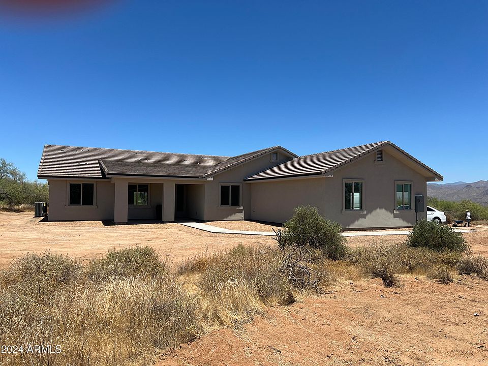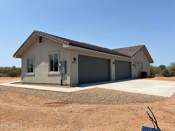 Contemporary Ranch Style Spread on 2 acres! Brand New Construction with Huge Garage located two blocks directly south of Rio Verde Drive on good road. Beautiful surroundings in every direction! NO HOA! Oversized 1044 Sq. Ft. 4 car garage with double 18 ft. doors. N/S exposure with vistas to the mountains and beyond! Bring your horses, toys & more! Tonto National Forest at end of street! Adjoining parcel available for purchase. Possible seller financing available.